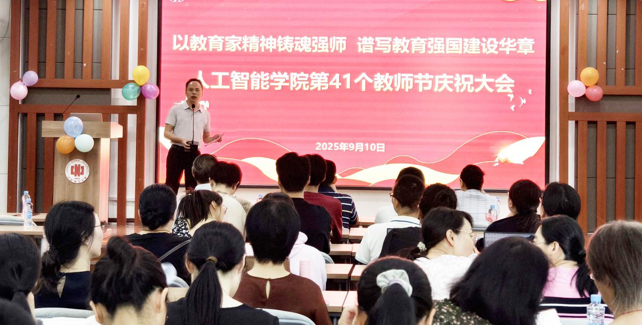 金秋九月,丹桂飘香;杏坛筑梦,礼赞师恩。9月9日下午,人工智能学院全体教师齐聚一堂,在青山湖校区双理楼二楼报告厅共庆新中国的第41个教师节。庆祝大会由院党委书记胡弢主持,院长江爱文作总结讲话;部分曾经在学院工作过的院领导和退休教师代表参加了庆祝活动。