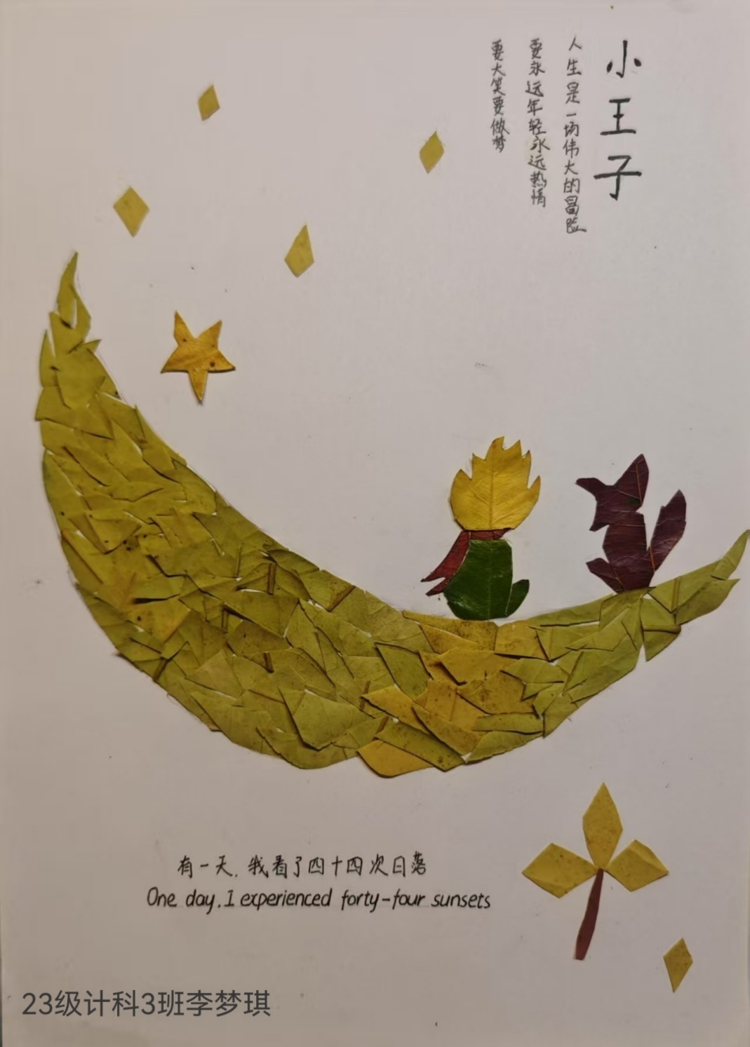 活动为期一周,同学们在此期间发挥想象力和造力,利用校园的落叶、落花、落枝等进行创意手工拼贴绘画,用别具一格的艺术形式展现师大的春日景致。在作品展示环节,同学们依次上台展示作品,并简要介绍创作的灵感、创作的技巧等内容。大家互相欣赏,交流互鉴,最终评选出五份优秀作品。