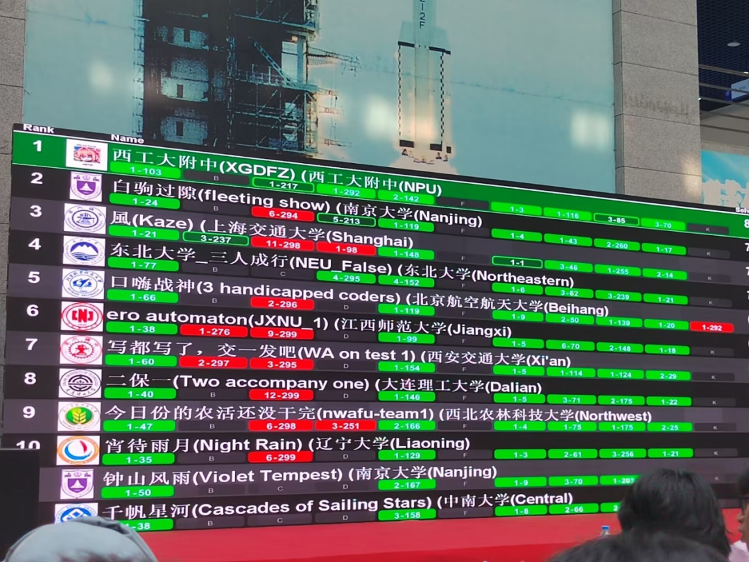 2023年5月13-14日,2023年ICPC国际大学生程序设计竞赛全国邀请赛(陕西)在陕西省西安市举行。国际大学生程序设计竞赛(International Collegiate Programming Contest, ACM-ICPC)是一项旨在展示大学生创新能力、团队精神和在压力下编写程序、分析和解决问题能力的年度竞赛,是世界上规模最大、水平最高的大学生程序设计竞赛,被誉为计算机软件领域的奥林匹克。本次比赛由西北工业大学承办,来自全国166所院校的361支代表队伍参加本次比赛。本次国际大学生程序设计竞赛在选手们地激烈竞争中圆满落幕,最终来自南京大学、上海交通大学和东北大学的队伍分别获得冠亚季军。
