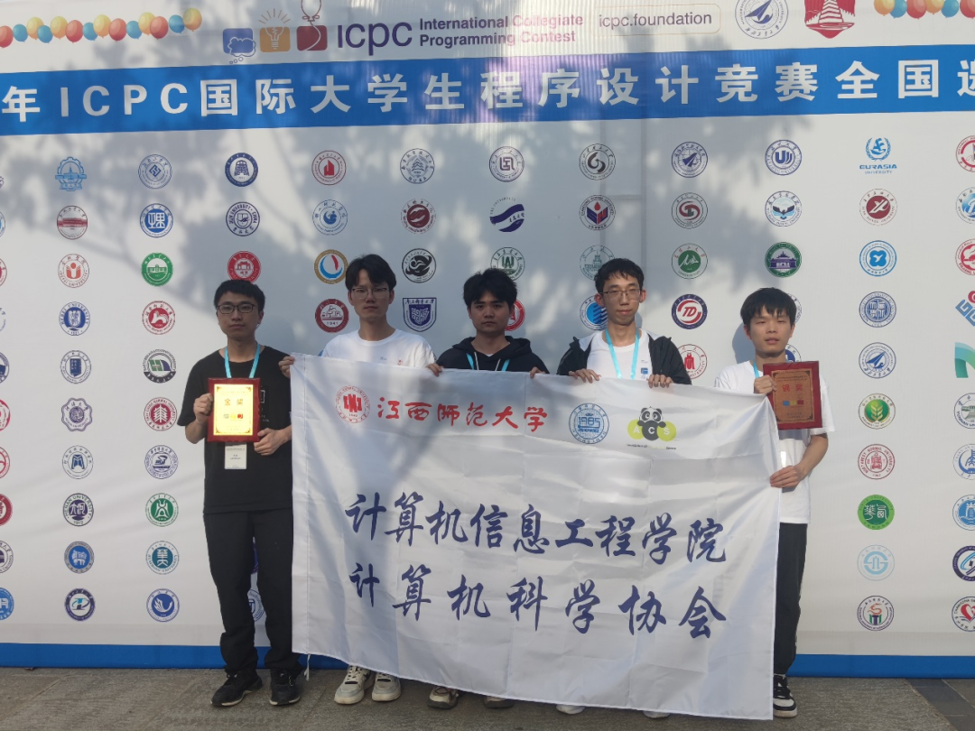 江西师范大学计算机信息工程学院派出由曾雪强和卢家兴老师指导的2只代表队参赛,取得金奖和铜奖各1项、学校排名第5位的佳绩,创江西省高校在此类高水平赛事中的最好成绩;其中陈哲和张天福同学组成的“ero automaton”队获得金奖,曾智超、李智文和刘凯组成的“草帽帮”队获得铜奖。
