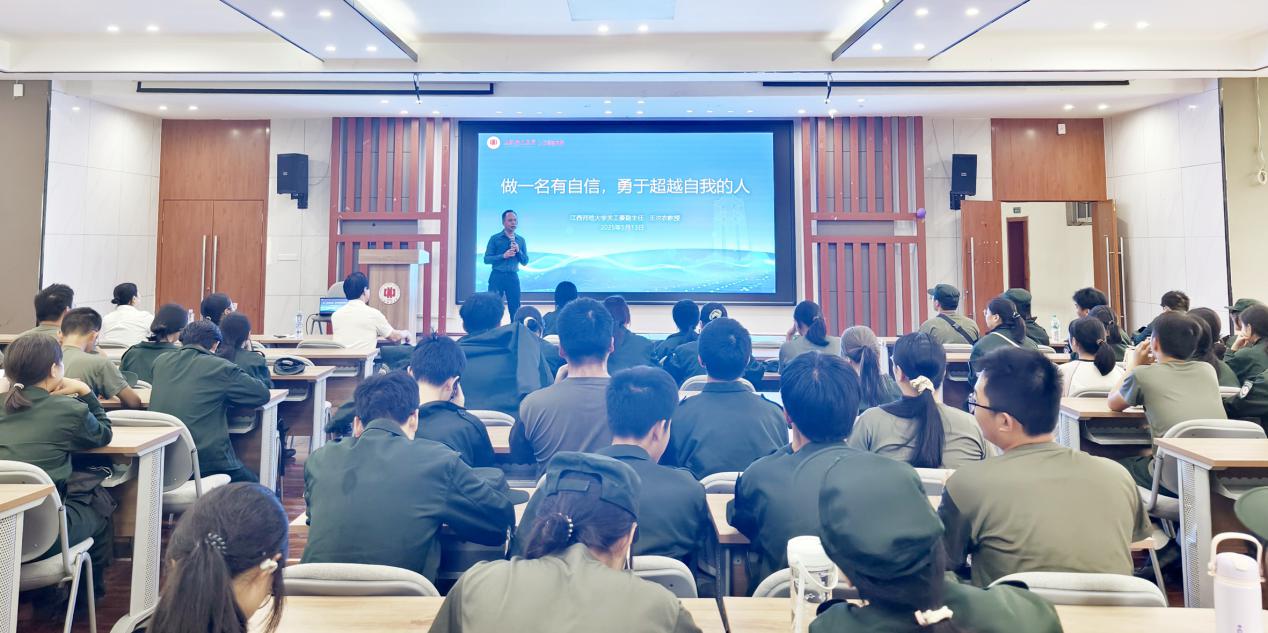 9月24日下午,一场别开生面的新生讲座在青山湖校区双理楼二楼报告厅举行。江西师范大学关工委副主任王次农教授以《做一名有自信、勇于超越自我的人》为题,为人工智能学院2025级新生带来了一场思想盛宴。人工智能学院党委书记胡弢、团委书记瞿玮在场听取了报告。