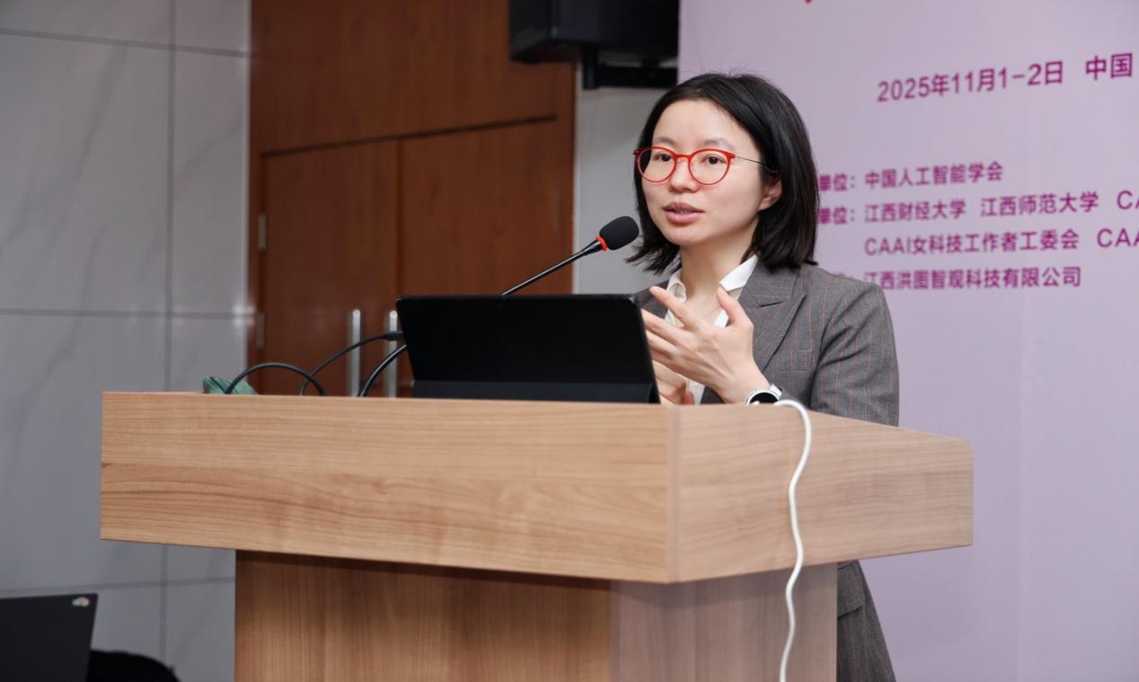 11月2日下午,中国人工智能学会主办,江西师范大学、CAAI会员服务工委会、CAAI女科技工作者工委会、CAAI教育工委会承办的2025中国人工智能学会大模型关键技术与应用前沿论坛——人工智能女性菁英论坛在我校青山湖校区双理楼人工智能学院二楼报告厅成功召开。我校党委常委、副校长、二级教授钟业喜,上海大学通信工程系主任、教授、教育部长江学者特聘教授曾丹,北京理工大学计算机学院教授、国家杰青获得者邬霞,广州大学网络空间安全学院二级教授、广东省高校特色智库网络空间安全治理创新研究院院长、国家级高层次领军人才齐佳音,中国医学科学院基础医学研究所研究员、北京协和医学院长聘教授、“协和学者”特聘教授、国家杰青获得者许琪,北京大学计算机学院二级教授、北大-安克大模型联合实验室主任张铭,电子科技大学计算机学院教授、国家级高层次领军人才、下一代互联网数据处理技术国家地方联合工程实验室主任、教育部长江学者特聘教授田玲等出席论坛。我校人工智能学院院长江爱文,副院长程艳、石海鹤和省内外及我校140余名观众现场参加了此次论坛,4000余名观众通过中国人工智能学会的线上直播了在线观看了论坛。论坛由我校人工智能学院左家莉副教授主持。