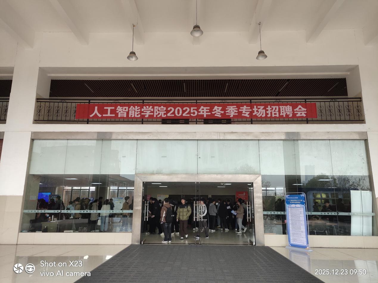 12月23日,江西师范大学人工智能学院在先骕楼二楼大厅成功举办2025年冬季专场招聘会。学院高度重视此次招聘会,院领导全程参与,招生就业处处长刘小明、副处长王小凡等亲临现场指导工作,招聘现场气氛热烈,秩序井然。