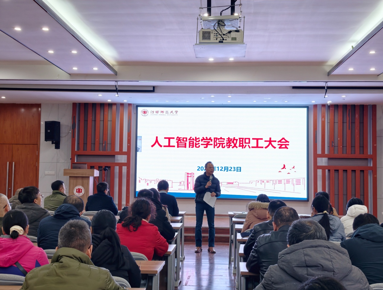 12月23日下午,人工智能学院隆重召开全院教职工大会和二级教职工代表大会,顺利完成新一届二级教代会代表选举、校级教代会代表选举及部门工会委员会换届工作。全院教职工以高度的政治责任感和主人翁精神参与本次大会,共同推动学院民主管理进程。