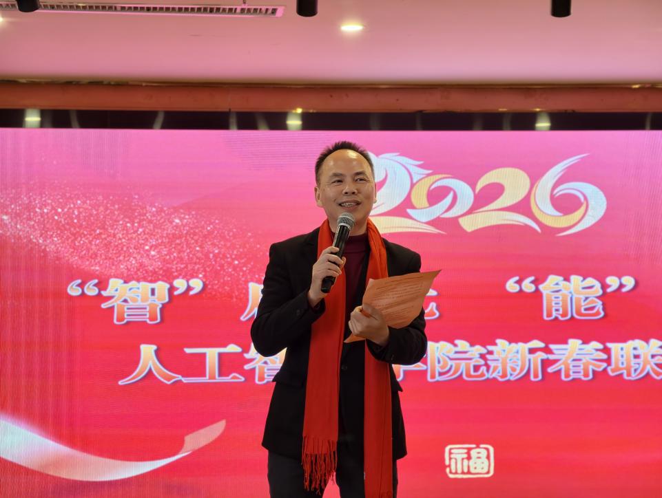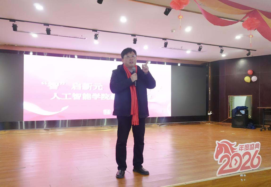 金蛇辞旧岁,骏马迎新春。1月16日下午,人工智能学院“‘智’启新元‘能’赋华章”2026年新春联欢会在瑶湖校区白鹿会馆举行,学院全体教职工、退休老同志欢聚一堂,以一张暖意融融的“全家福”和一场精彩纷呈的联欢会,共迎新春佳节,凝聚奋进共识,蓄力新征程。