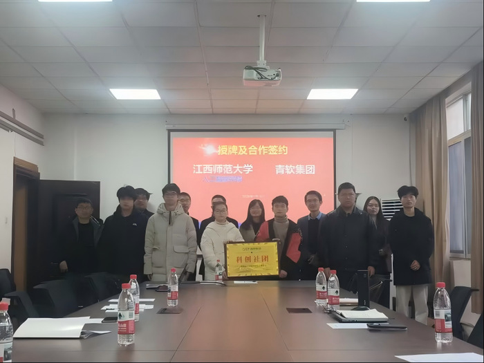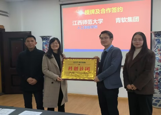 1月15日上午,青软创新科技集团股份有限公司与江西师范大学人工智能学院校企共建社团暨产教融合合作仪式在学院双理楼三楼会议室举行。青软集团江西办事处总经理蔡文峰,江西师范大学教务处副处长蒋长根、人工智能学院党委副书记黄清明、副院长石海鹤以及社团师生代表共同出席仪式。
