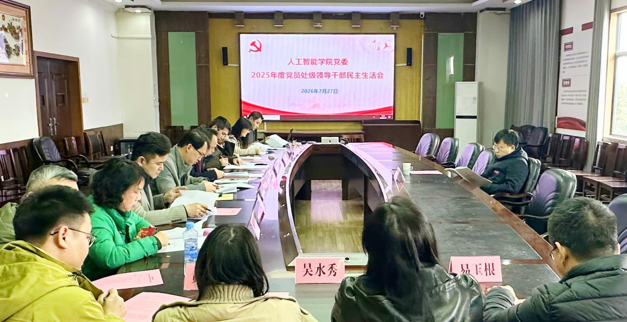 2月27日下午,人工智能学院党委在先骕楼3306会议室召开2025年度党员处级领导干部民主生活会。校党委副书记汪洋莅会指导,院党委书记胡弢主持会议,学院党员处级领导干部参加,教学科研管理一线党员教师代表列席。